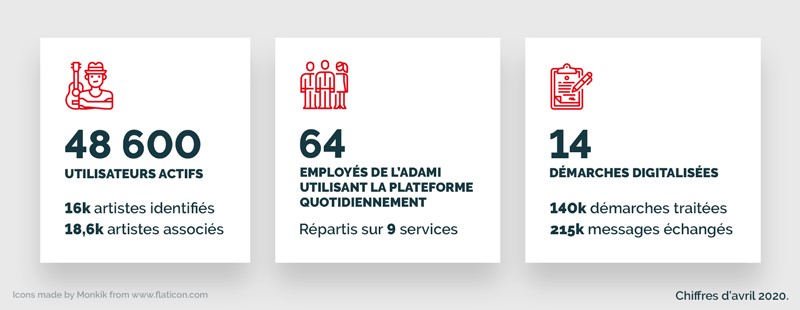 La première mise en ligne d'un MVP, effectuée en 2015, ne contenait que 3 démarches et pas de messagerie. Ceci nous a permis de voir rapidement l'accueil, très positif, du projet par les artistes mais aussi par les équipes internes.