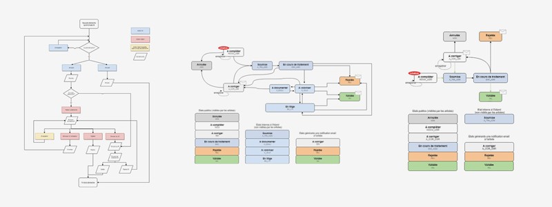 La phase de conception a duré plusieurs mois, durant lesquels nous avons mené beaucoup de réunions avec le SI et les équipes métier. En ont découlé plusieurs documents de spécification et des dizaines de schémas fonctionnels.